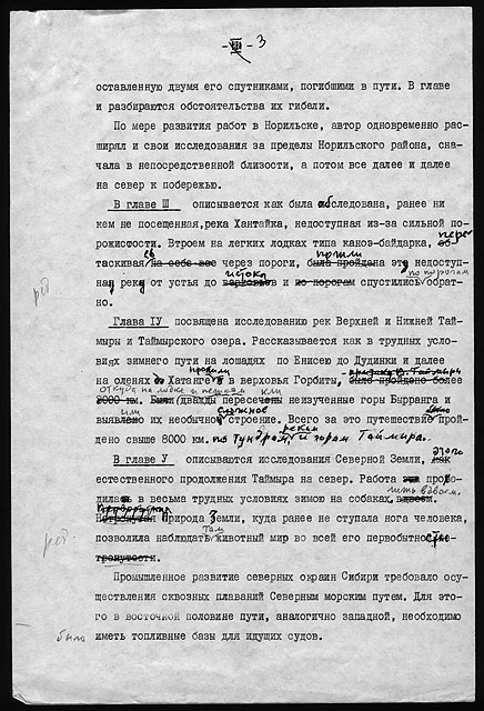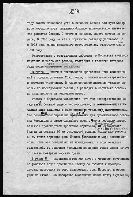 Книгу заслуженного деятеля науки РСФСР, профессора Н.Н. Урванцева, повторяю, нужно рассматривать как живое, увлекательное изложение ранней, особенно интересной истории, точнее, предыстории Норильска и его горно-металлургического комбината. Но, кроме того, читатель найдет в этой книге немало ясно увиденных примет уже далекого от нас времени, метких характеристик людей, точных зарисовок природы, массы сведений по геологии, географии, этнографии края, а также попутно и легко вытекающих из текста данных об экспедиционном быте, приемах полевой работы геологов, о жизни северных оленеводов и т. д.