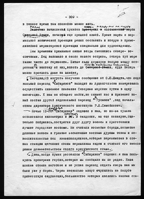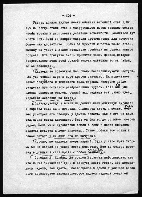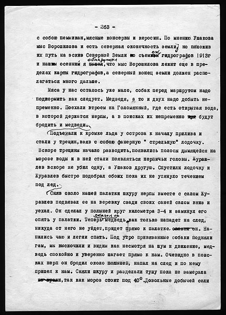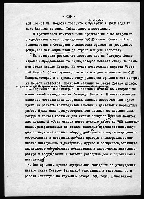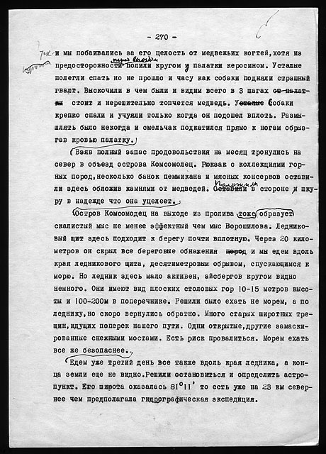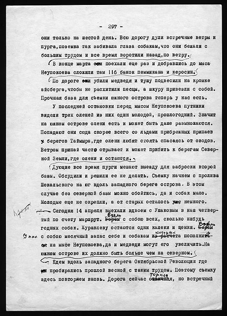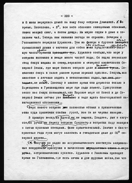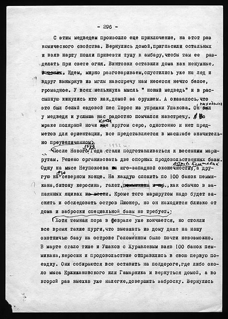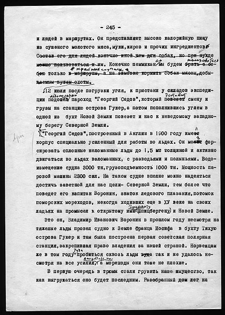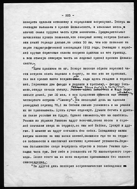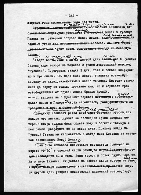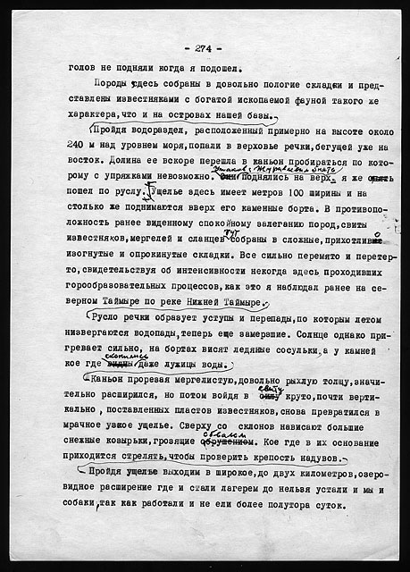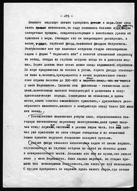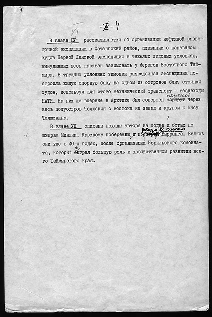 Рукописи литературных работ (1973 - 1979): "Как мы нашли почту Амундсена", "По Северному Таймыру", "У истоков Норильска" и др.