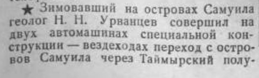 1929. — Исследовательский маршрут по северо-западной части Таймырского полуострова — 10 тыс. километров на лошадях, оленях и моторной шлюпке.