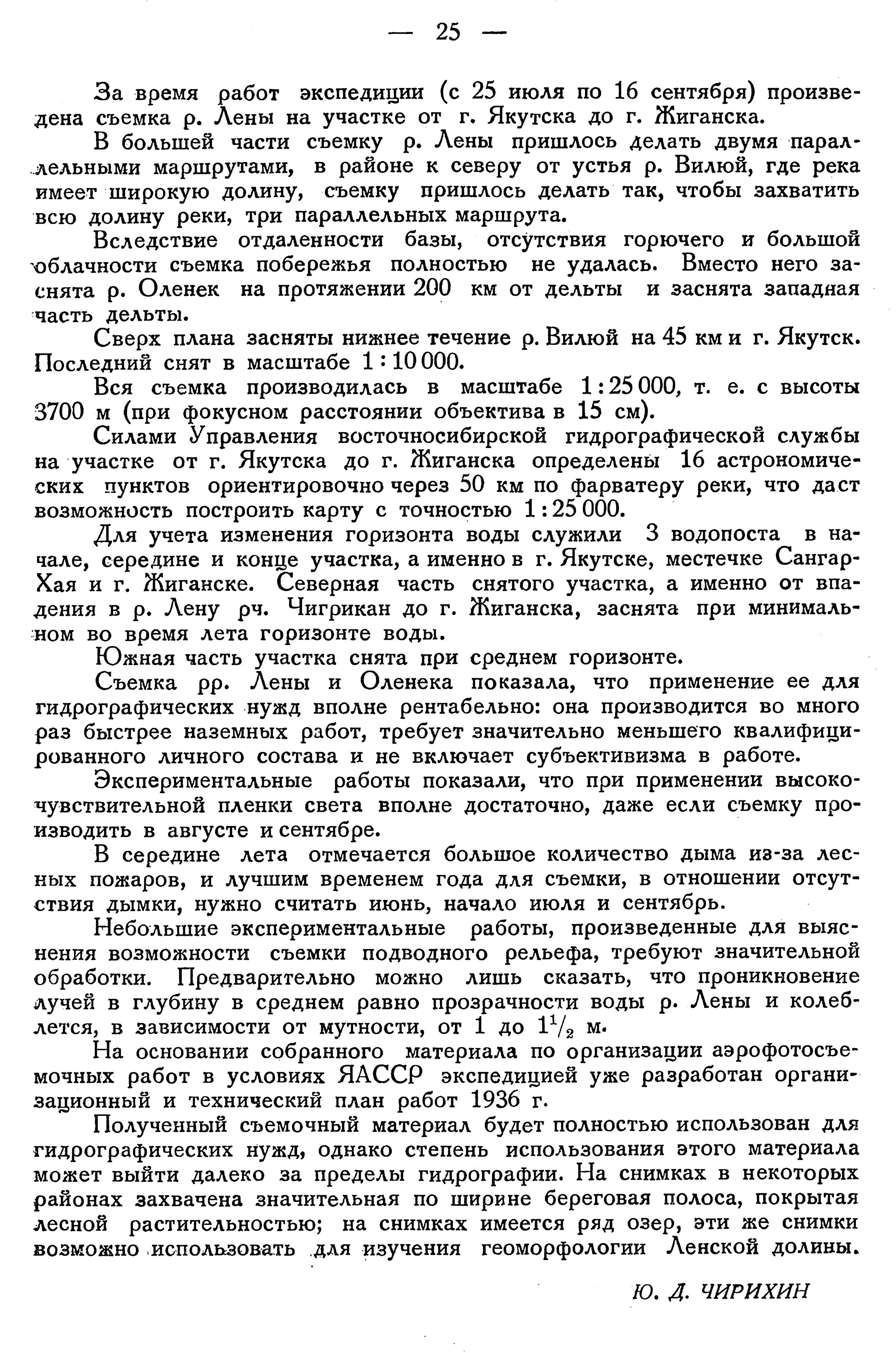 На основании собранного материала по организации аэрофотосъемочных работ в условиях ЯАССР экспедицией уже разработан организационный и технический план работ 1936 г.