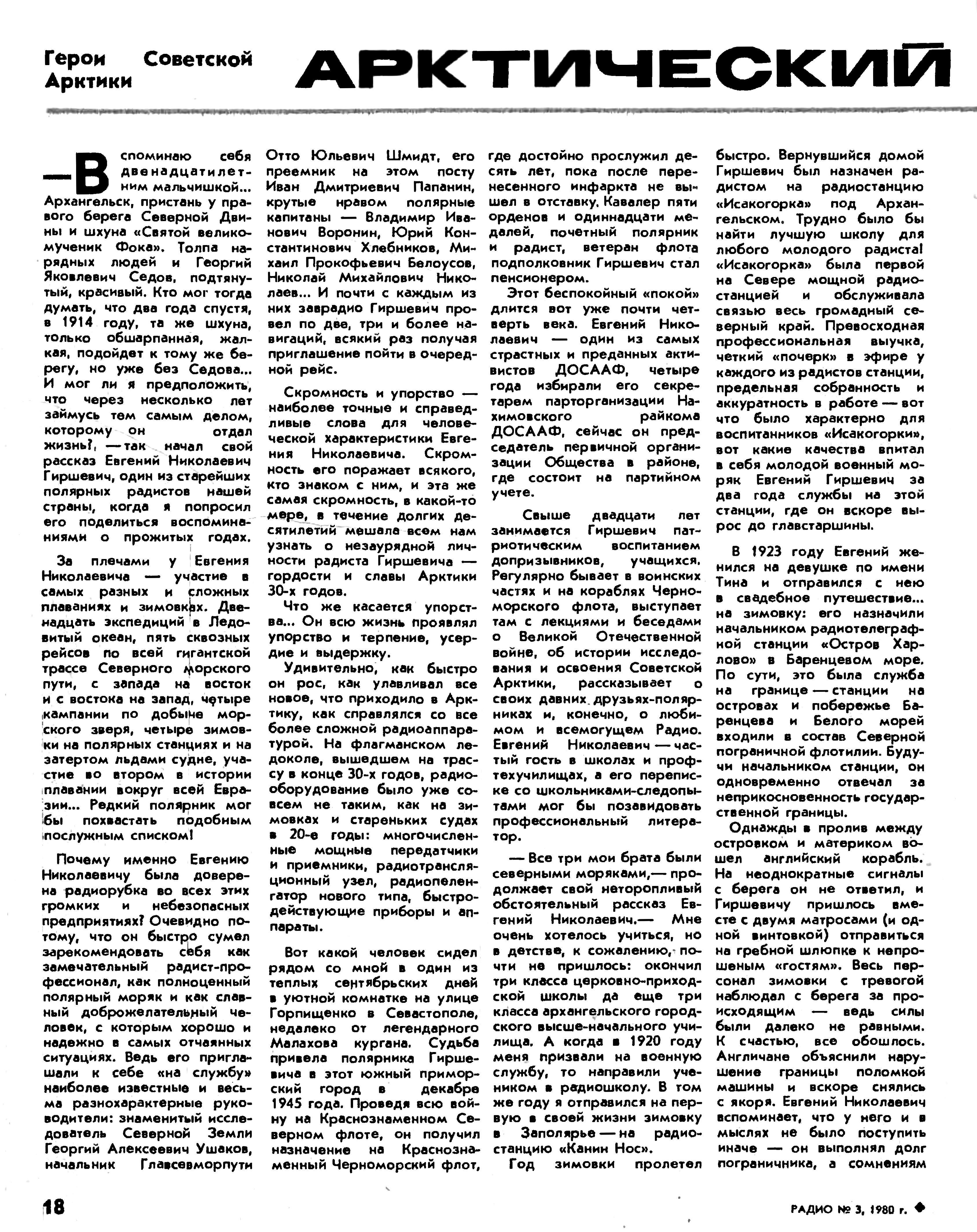 Из истории освоения Арктики:Полярный радист Евгений Гиршевич© Валентина Власова, историк