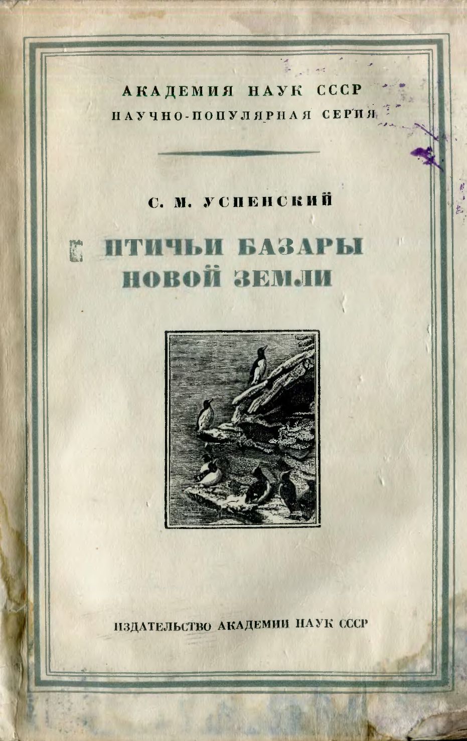 Успенский С.М. Птичьи базары Новой Земли . - Москва : Изд-во Акад. Наук СССР, 1956. - 179 с., 2 л. ил. : ил.; 20 см. - (Научно-популярная серия/ Акад. наук СССР).