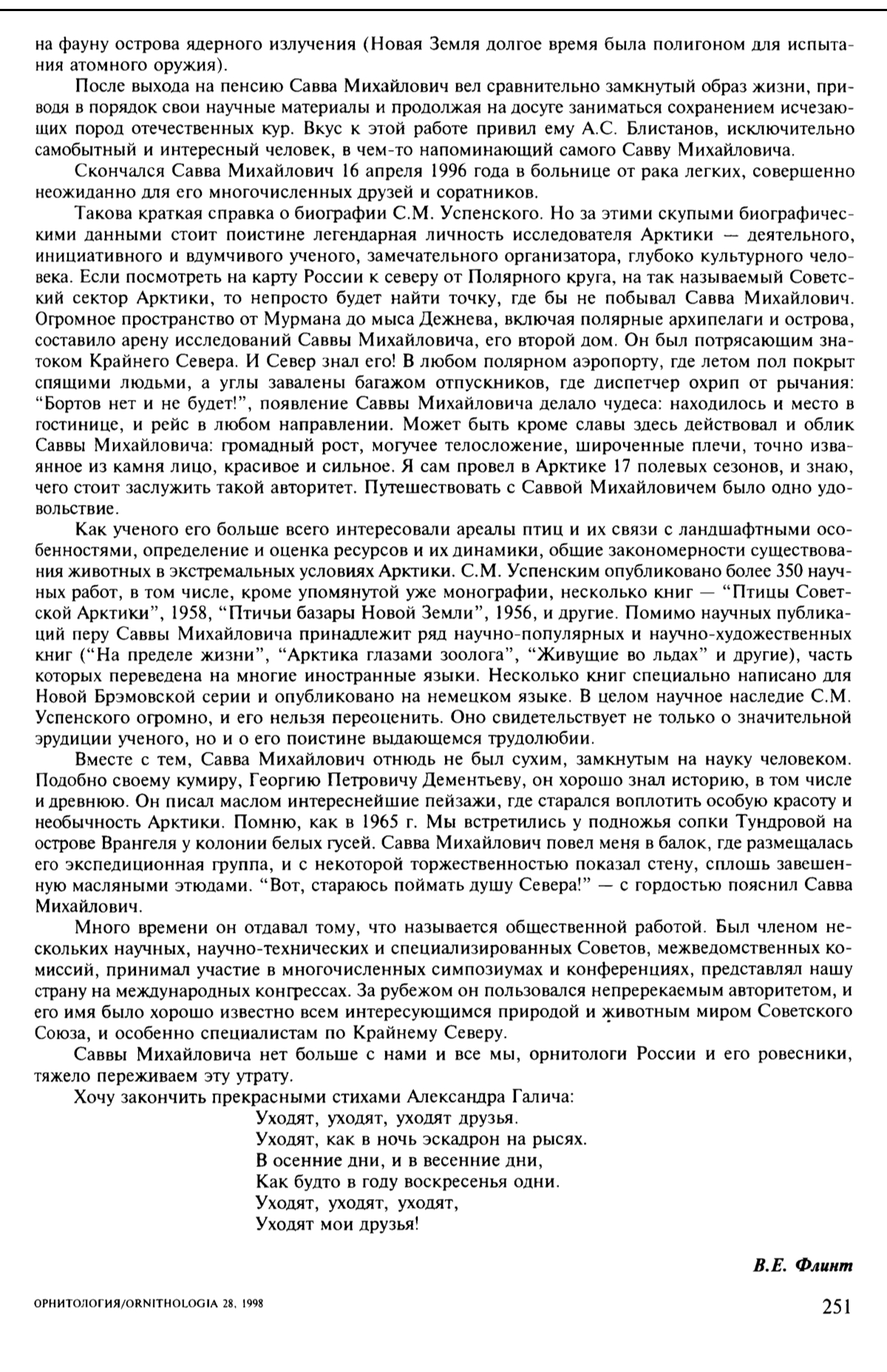 Флинт В. Е. Памяти Саввы Михайловича Успенского // Орнитология ; вып. 28. - Москва, 1998. - С. 249-251