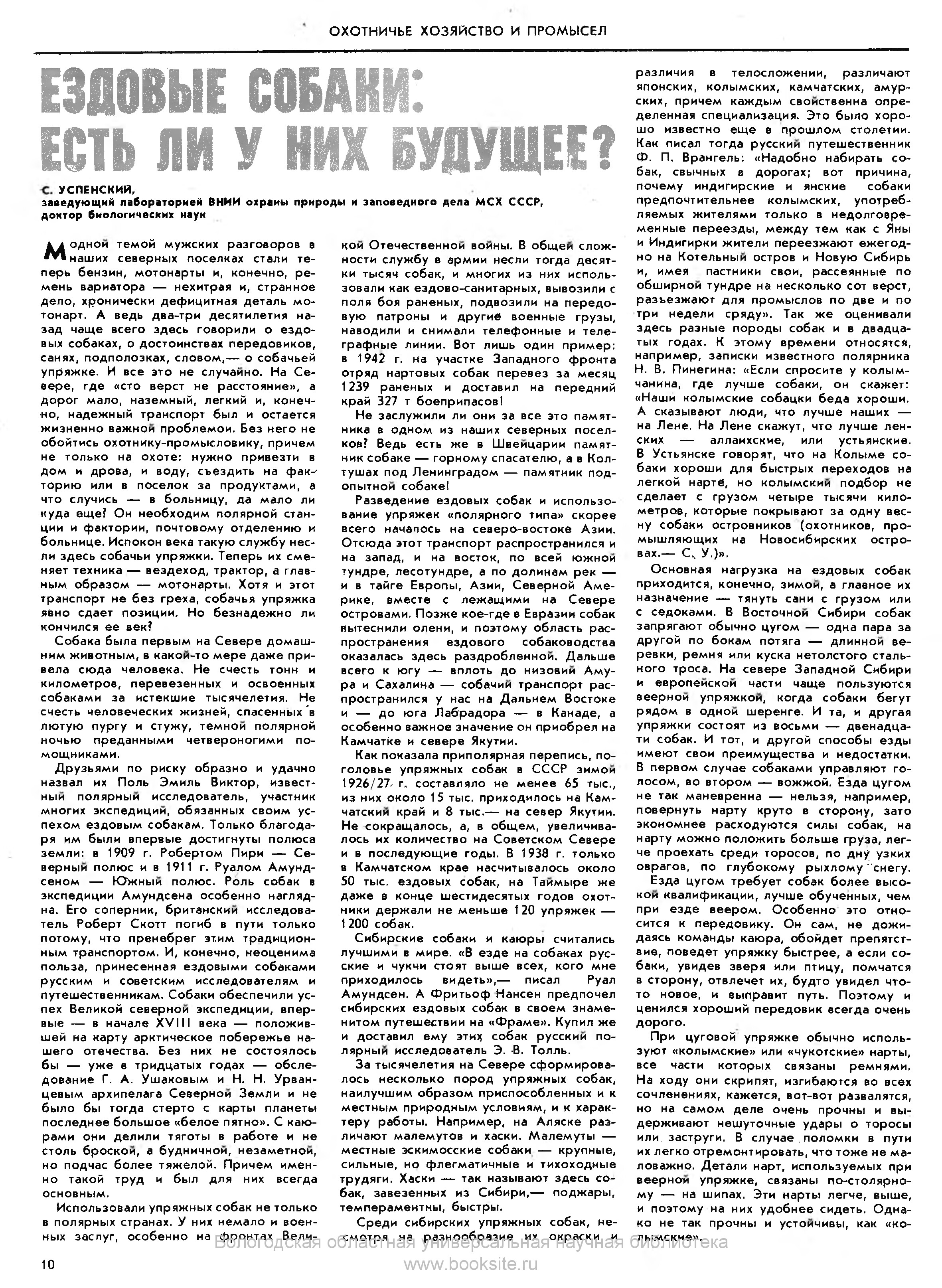 Савва Михайлович Успенский (1920-1996), биолог-охотовед, доктор биологических наук, профессор, выдающийся зоолог (орнитолог и териолог), полярный исследователь и деятель охраны природы, родился 9 декабря 1920 года в подмосковном Звенигороде, в семье художника М.М.Успенского.