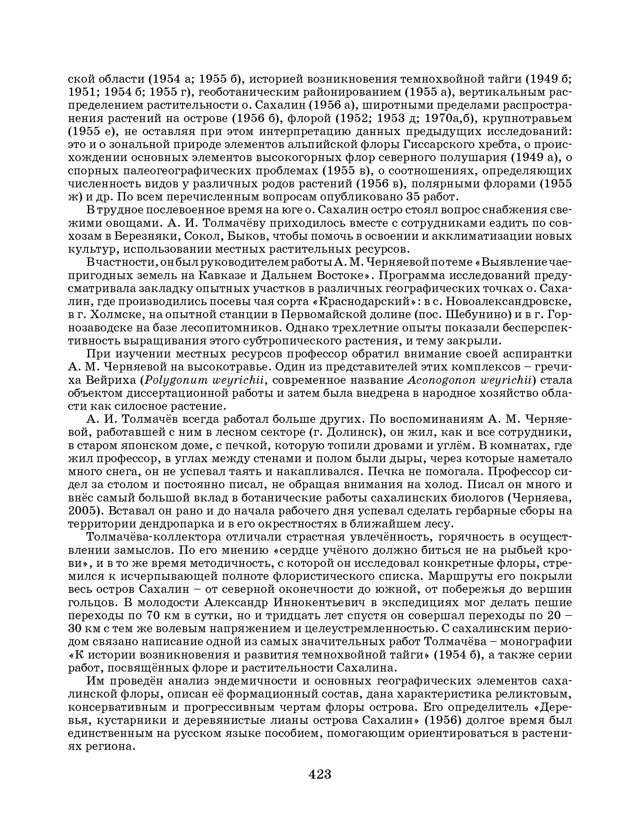 Александр Иннокентьевич Толмачёв проработал в Сахалинском филиале АН СССР с 1947-го по 1955 г., оставив заметный след в становлении ботанической науки на о. Сахалин.