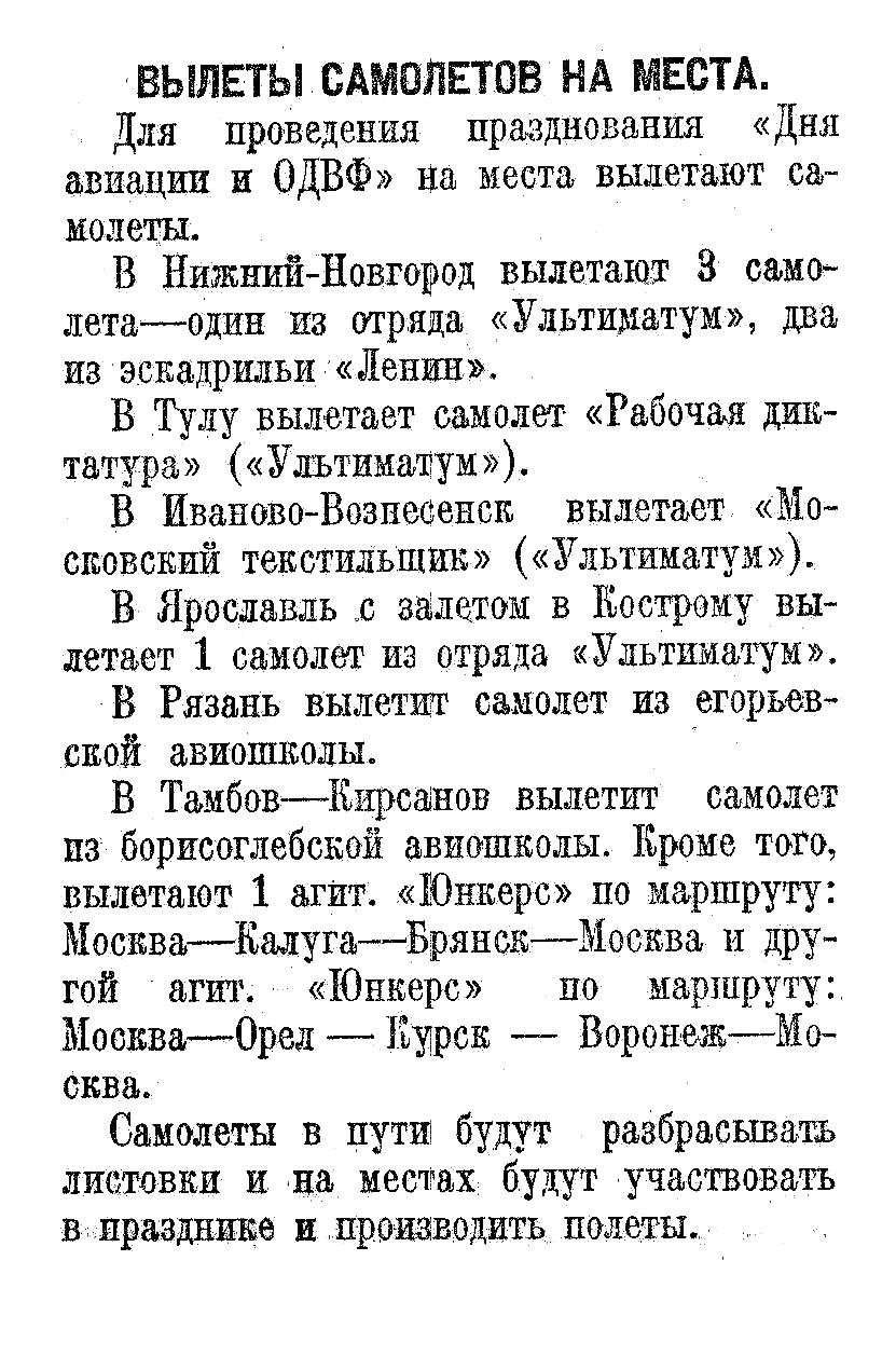 Воздушное сообщение в местности, где нет никах других видов транспорта, над районами, где не ступала нога человека, таящими в недрах своих огромные богатства, — окажет неоценимую услугу экономике Союза.