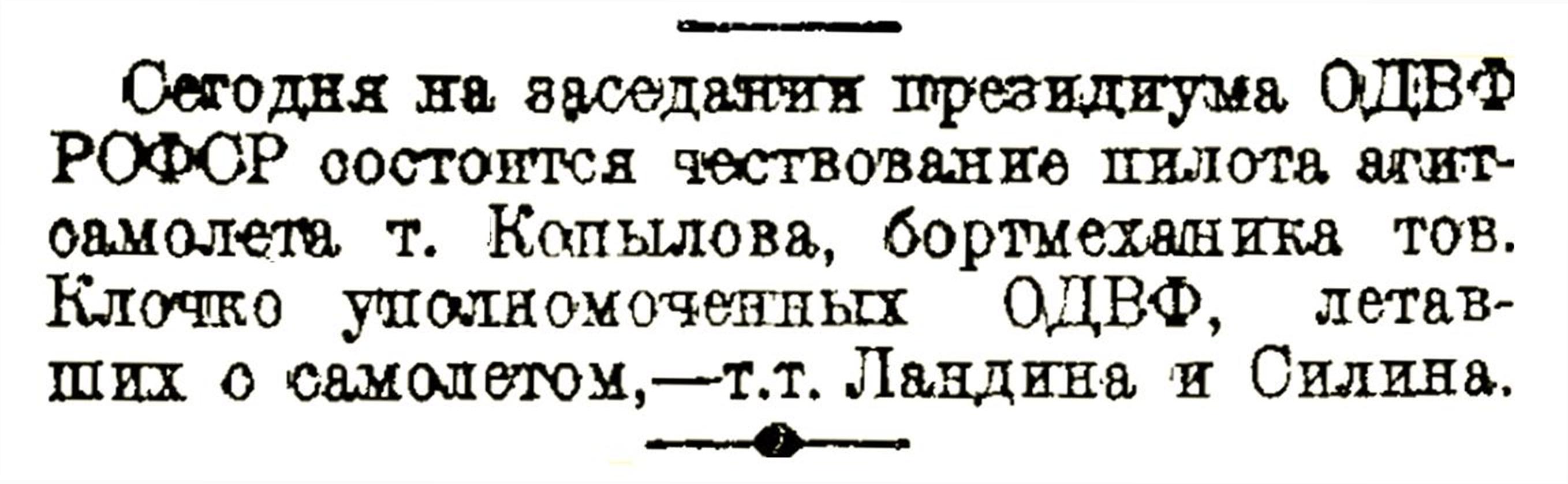 Правительство Союза признало необходимым форсировать развитие воздушного сообщения в ДВК, как единственного и быстрого вида механической связи с далекими пунктами к административными центрами северных округов ДВК.