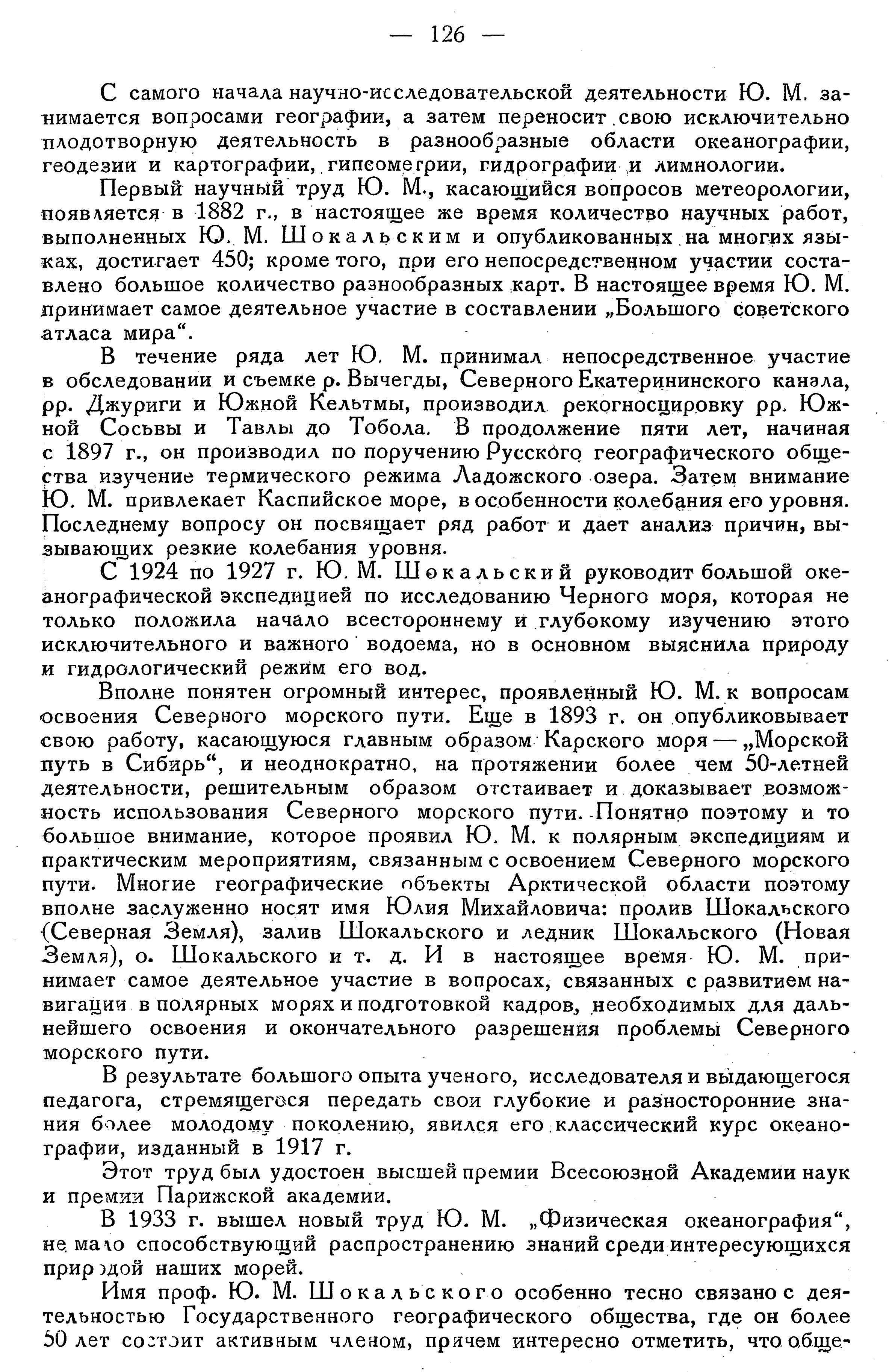 В 1933 г. вышел новый труд Ю. М. „Физическая океанография", не мало способствующий распространению знаний среди интересующихся природой наших морей.