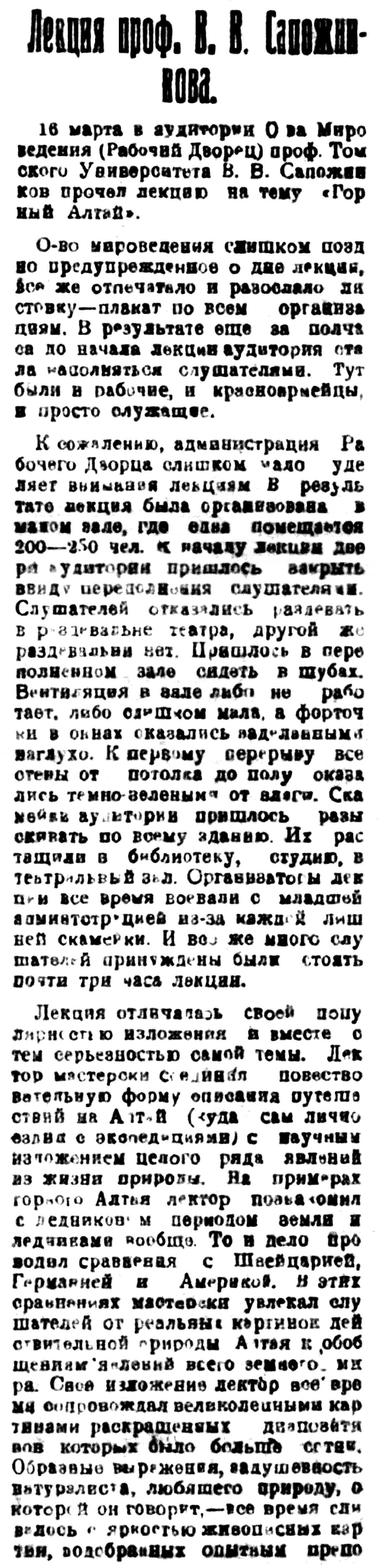 Советская Сибирь, 1923, № 060 (1923-03-20) лекция проф. Сапожникова про Алтай - 1.jpg