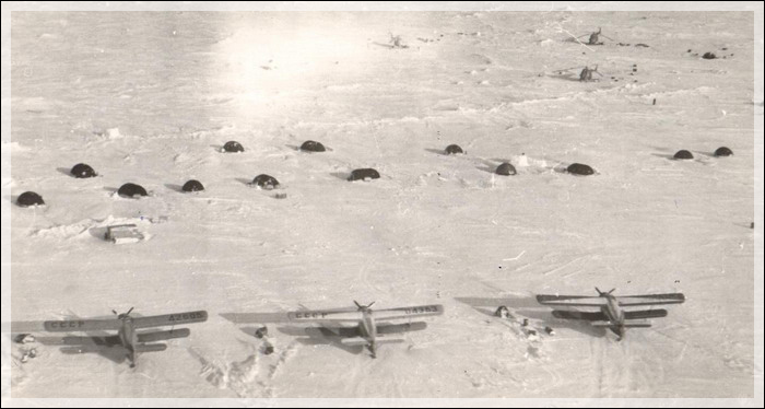 Чётко и слаженно работают на ледовых базах экипажи Ан-2 и вертолётов. Командир этой группы Борисов, сам впервые участвующий в экспедиции, отлично организовал перелёт большой группы самолётов и вертолётов