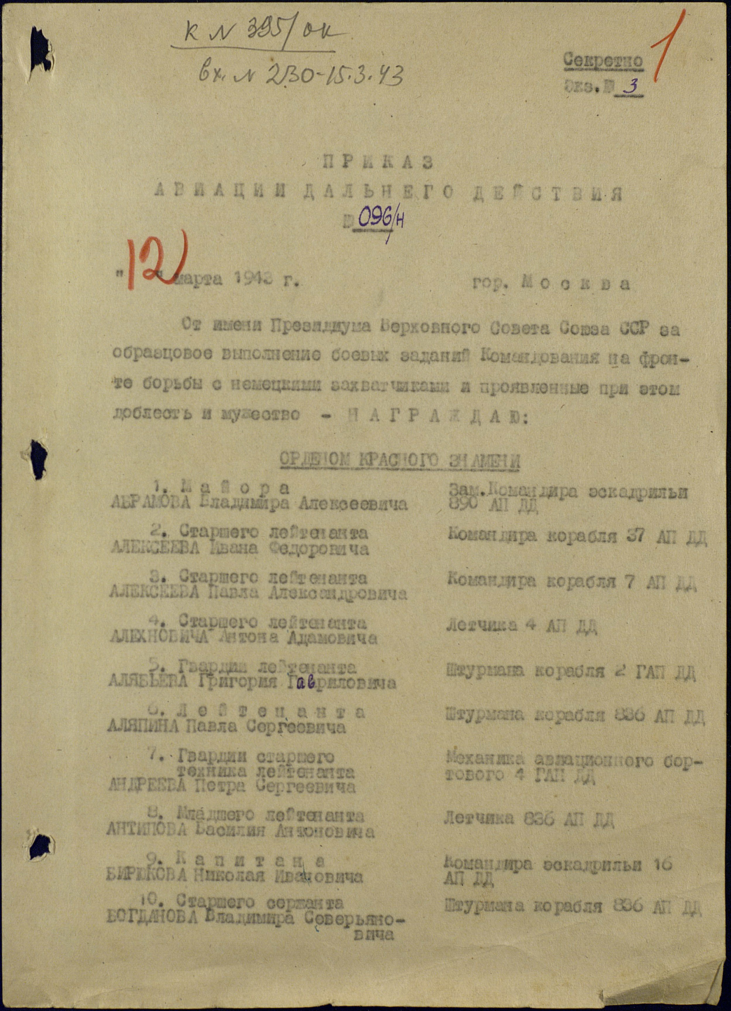 Орден Красного Знамени (12.03.43)