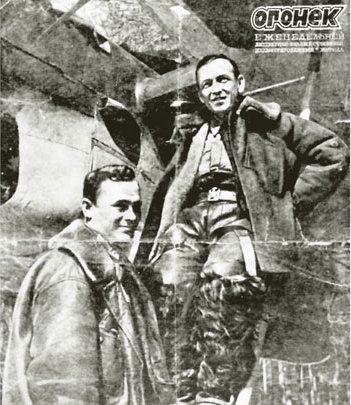 Эта фотография публиковалась на обложке журнала «Огонек» в 1942 году, рассказавшего о подвиге летчиков.