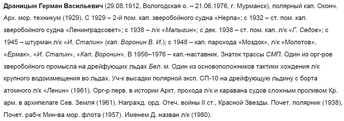 https://goskatalog.ru/portal/#/collections?id=55575959В честь него в 1980 г. назван ледокол "Капитан Драницын" - см. тему -