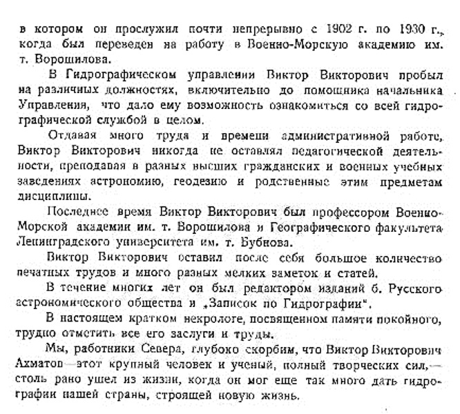 Лит.: Рождественский А. Н. [и др.], Виктор Викторович Ахматов, "Записки по гидрографии", 1934, № 3.