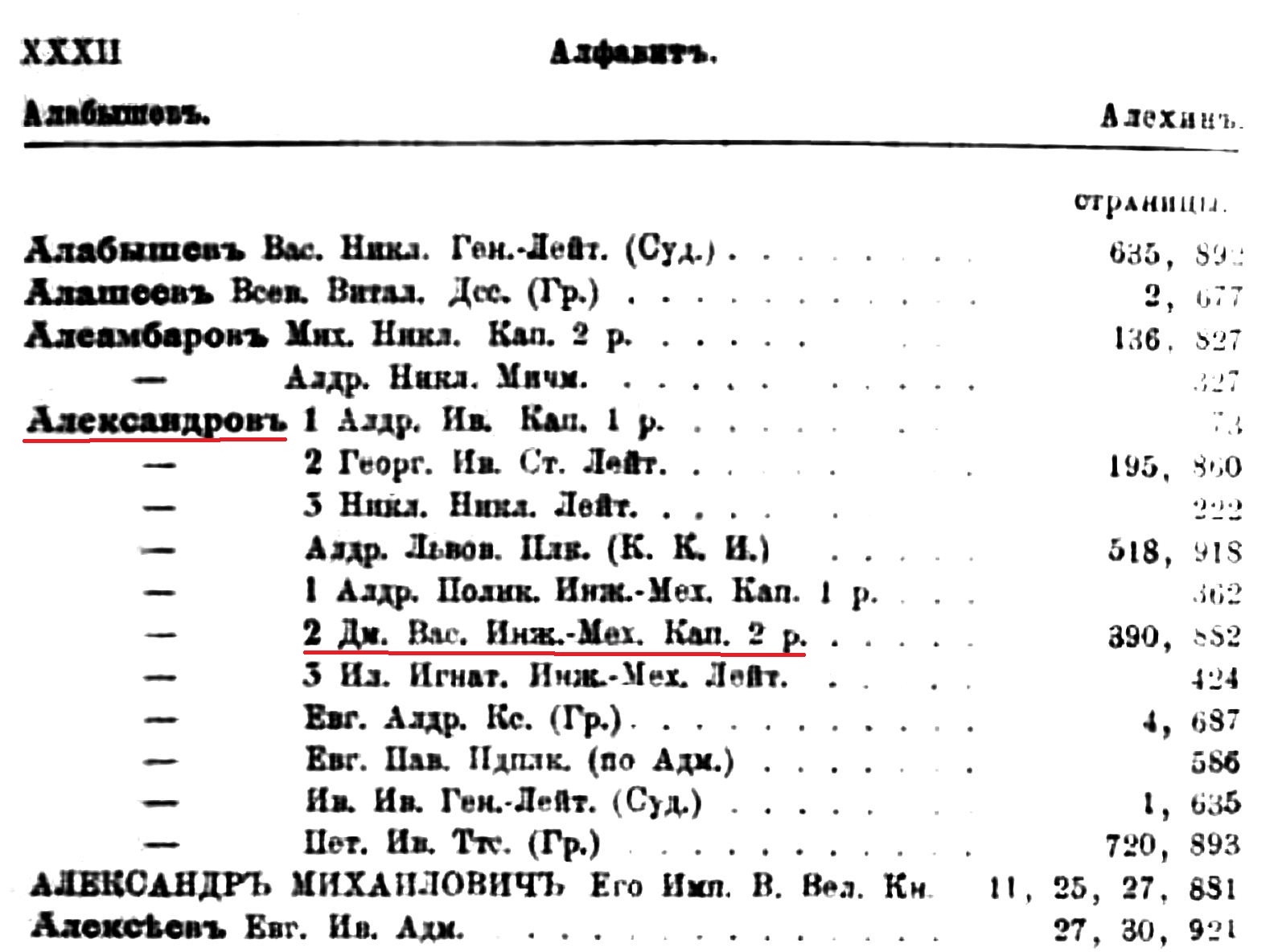 Среди воспитанников Морского инженерного училища (г. Кронштадт) с 1894 г. числится Александров Дмитрий Васильевич.