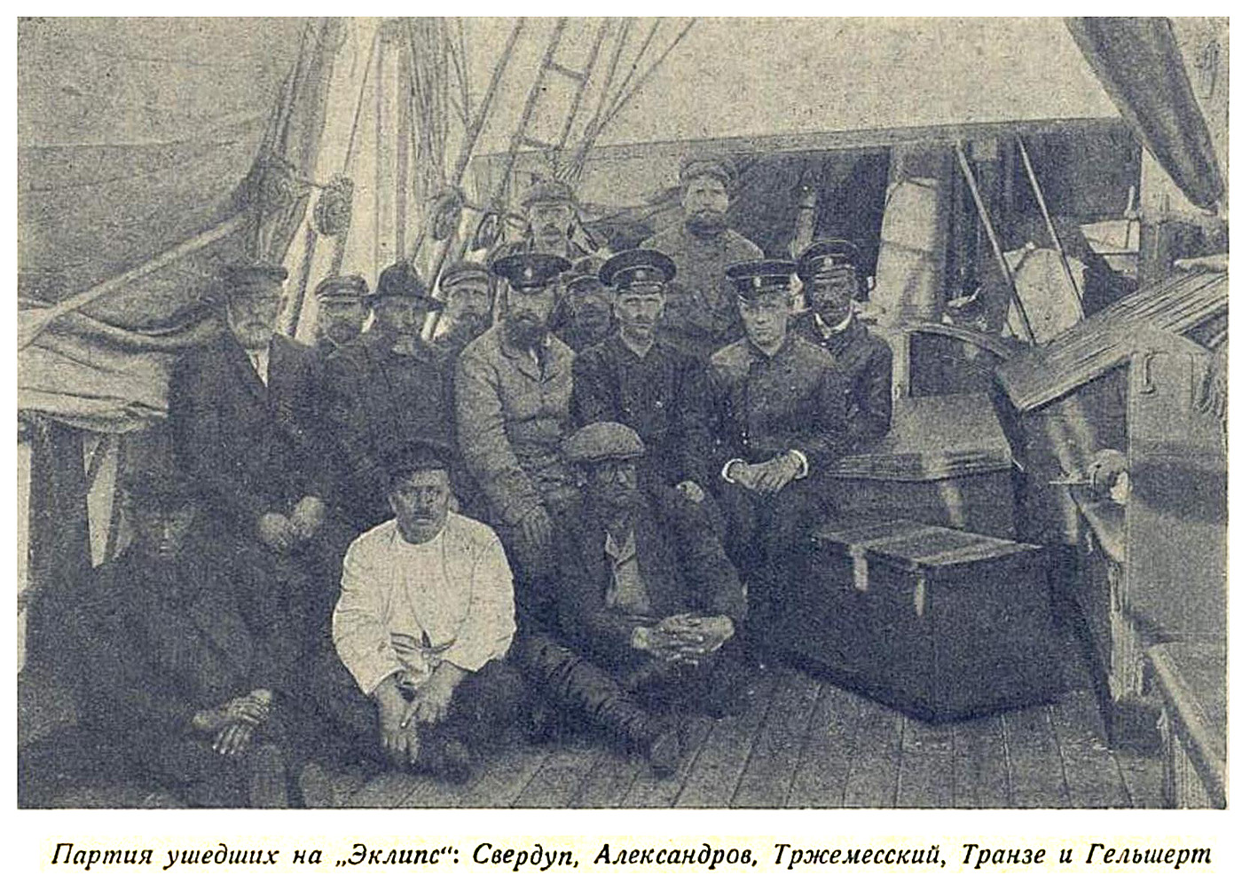 На фото Александров с Тыркаловым, вероятно, стоят слева, а поверх крыльев «фармана», за мыском, посередине бухты виден « Таймыр».