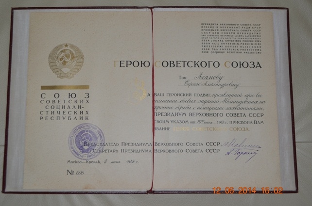 20.06.42 г. С.А.Асямову присвоено звание Героя Советского Союза.