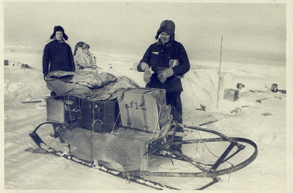 Э.Т. Кренкель у нарт с радио-станцией "УПОЛ"