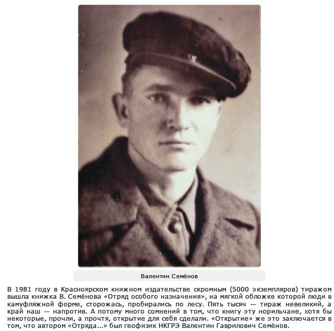 Капасёв пишет:... Справо сзади - техник-оператор В.Г. Семенов, остающийся старшим на базе, бывший начальник разведки партизанского отряда Медведева."