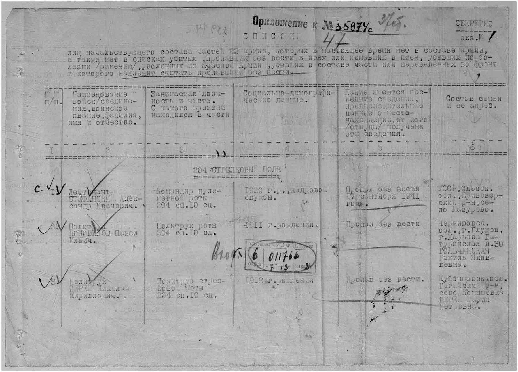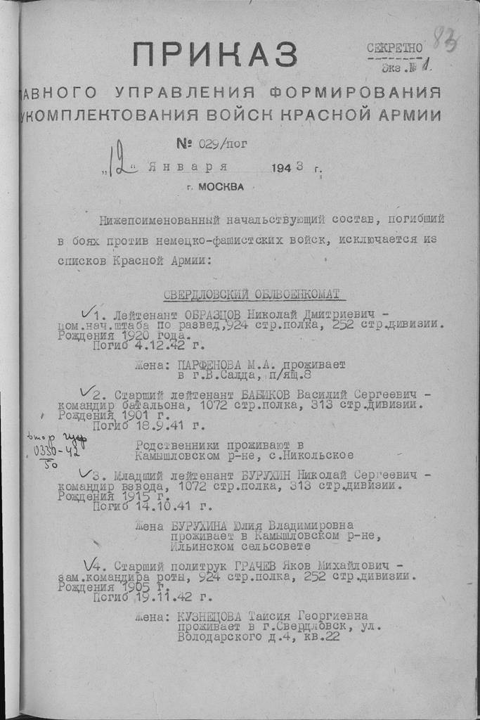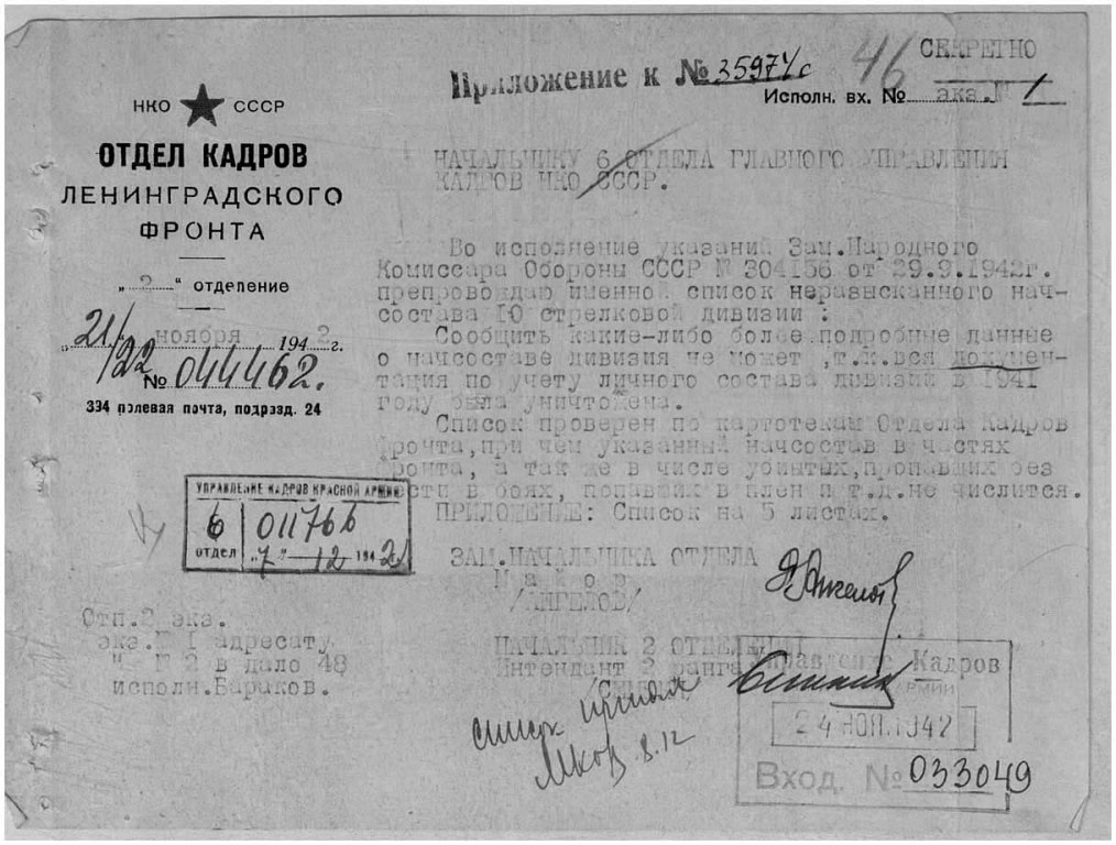 Донесения о безвозвратных потерях № 35974 от 14.12.1942