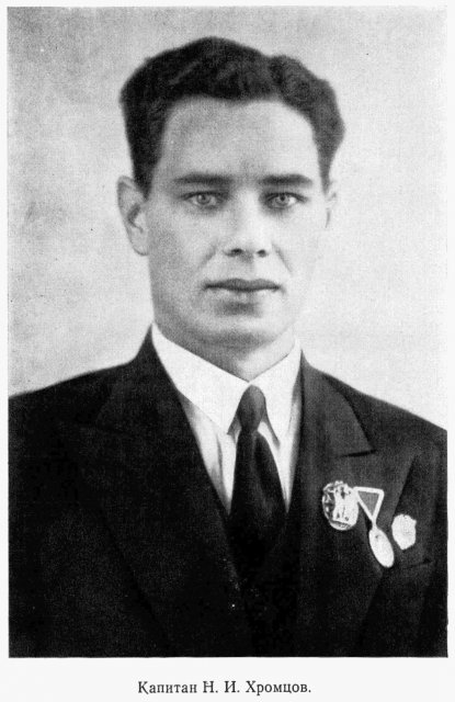 «С началом войны многие рабочие завода, работавшие по ремонту ледокола, были мобилизованы в армию. Чтобы быстрее закончить ремонт, командир корабля т. Хромцов Н.И. отдал приказ организовать бригады по ремонту корпуса из судового состава машинной и палубной команд. Ледокол благополучно вышел из дока, вступив в строй действующих кораблей. Во время стоянки в порту Мурманск ледокол находился в полной боевой готовности и огнем своих орудий отражал налеты фашистских самолетов. На верхнем мостике ледокола всегда находился командир Хромцов. Умело маневрируя кораблем, он избегал прямого попадания бомб и совместно с командиром артиллерии вел по фашистским самолетам огонь. Николай Иванович в таких сложных и серьезных моментах проявлял большую силу воли и спокойствие и этим подавал пример всему личному составу экипажа как волевой, знающий свое дело командир...»