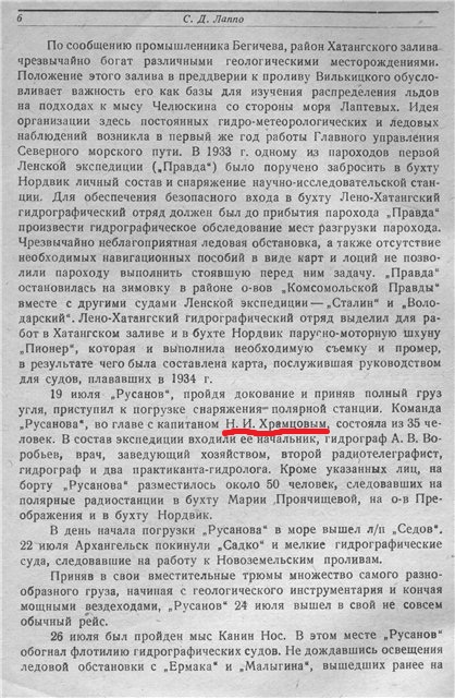 Он пишет: «В план работ Третьей высокоширотной экспедиции на «Садко» в основном входили задачи, возложенные на экспедицию 1936 года и оставшиеся невыполненными вследствие неблагоприятных ледовых условий... На борту "Садко" находилась также группа зимовщиков со станции на островах Де-Лонга в составе 7 человек во главе с Л.Ф.Мухановым...»*