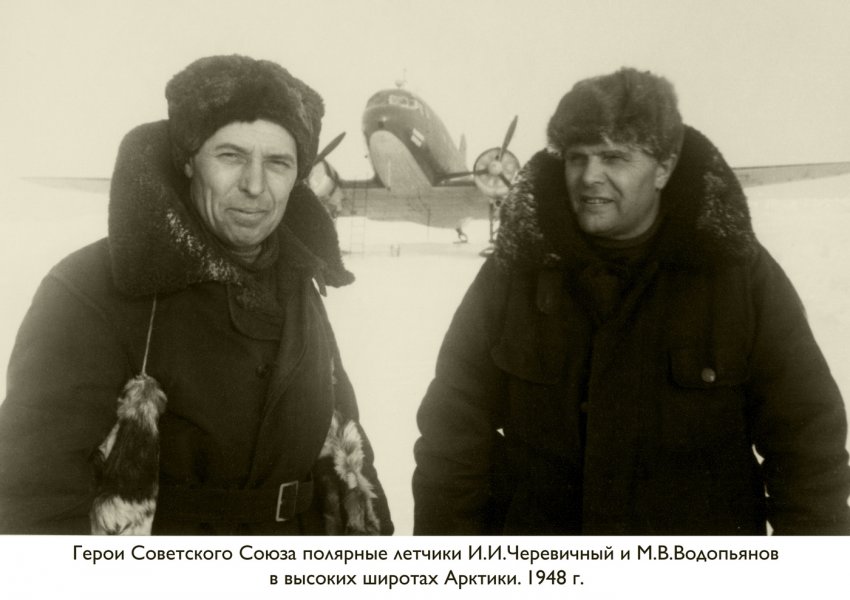 На снимке: И.И.Черевичный и Герой Советского Союза М.В.Водопьянов - участники ВВЭ "Север-2" (1948 г.).