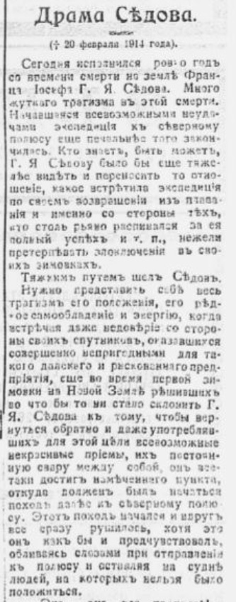 Казалось бы, об экспедиции Георгия Седова на Северный полюс известно все до мельчайших подробностей, есть фильмы, книги, многочисленные исследования. Однако сохранившаяся хроника 1912-1913 годов указывает на "белые пятна" в этой арктической истории.