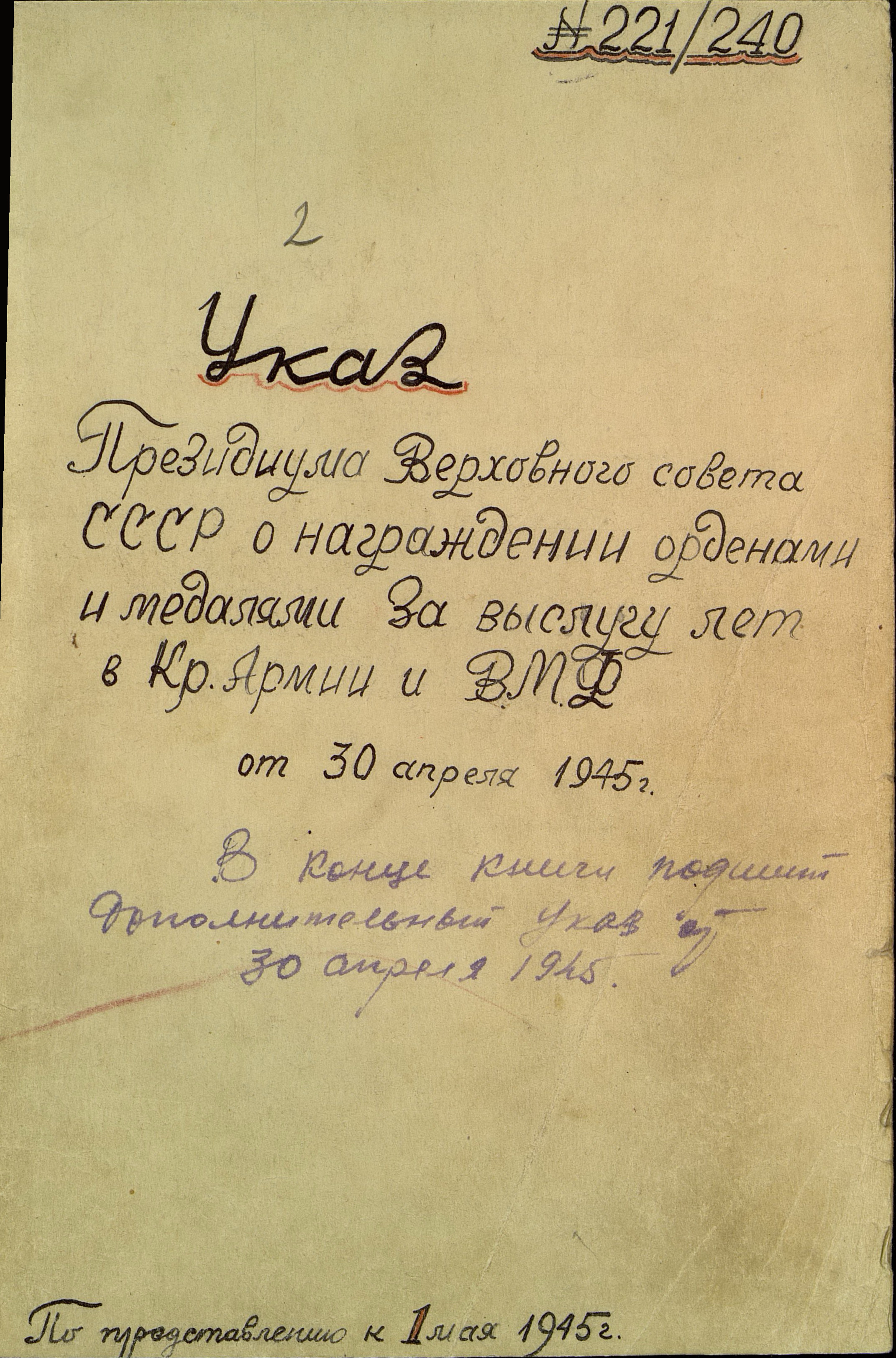 в РККА с 23.02.1918 годаПриказ или указ: Архив ЦВМА фонд 3 опись 1 единица хранения 1202