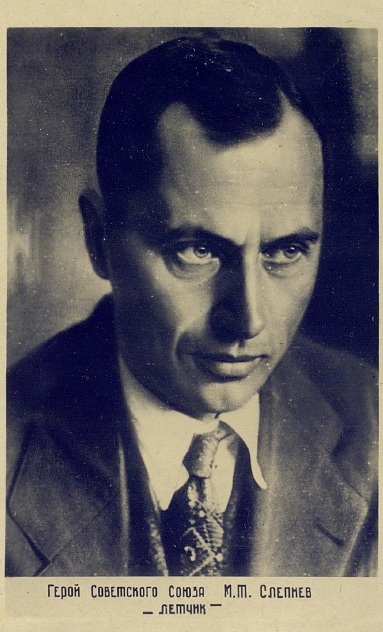 Герой Советского Союза М.Т. Слепнев - летчик. [открытка]. - Москва : ОГИЗ - ИЗОГИЗ, 1934. - Фото ; 14,2 х 9,4 см