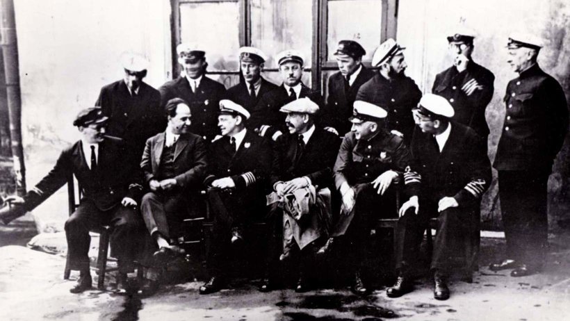 Р. Л. Самойлович, директор Всесоюзного арктического института (третий справа в нижнем ряду) с соратниками. Иван Ландин – третий справа в верхнем ряду