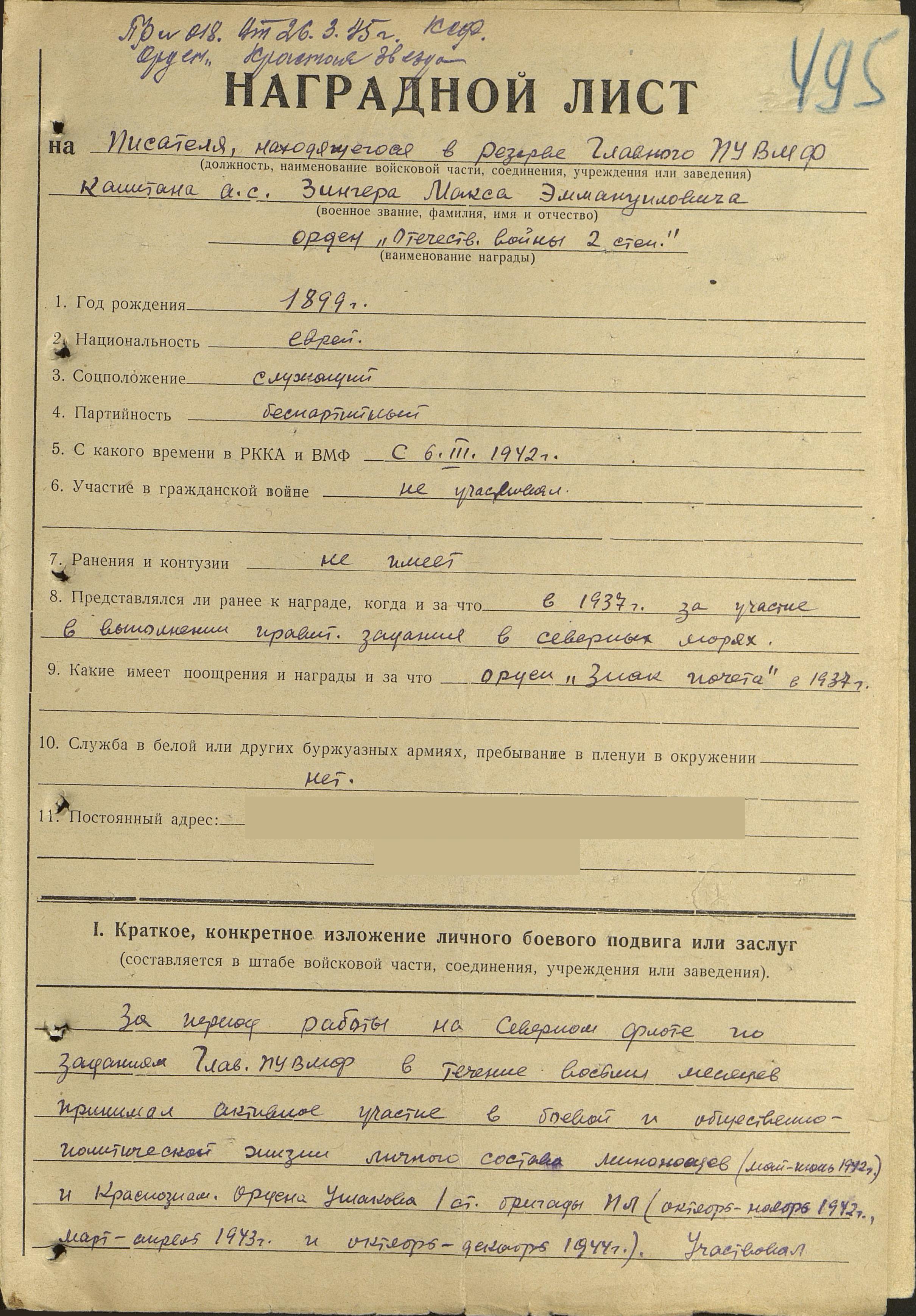 Бессмертие героя. «Красный флот» 1945 № 125, 30 мая, стр. 3.