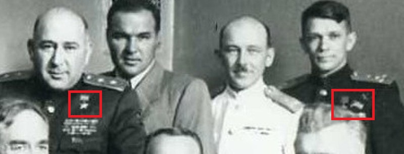 Я писал про задний ряд на снимке, что стоят. А кто сидит - вопросов почти нет. Байдуков внешне очень похож, но почему без Звезды Героя? Висит на парадном кителе? Помнится, многие герои имели кроме основной звезды и муляж - для повседневной носки.