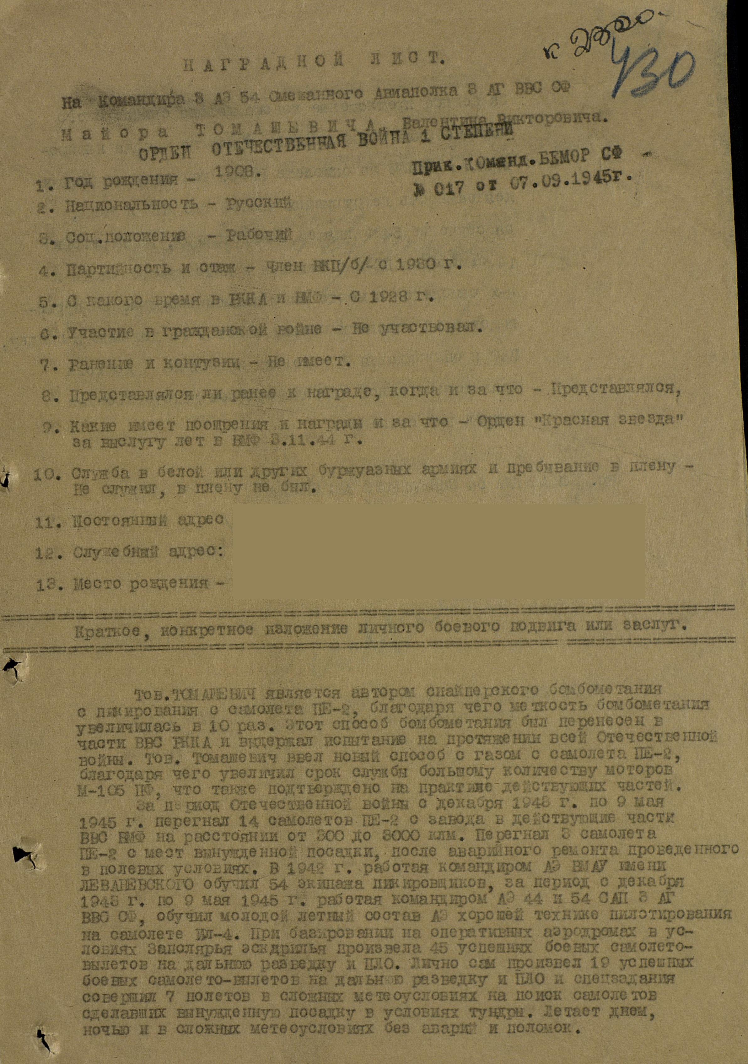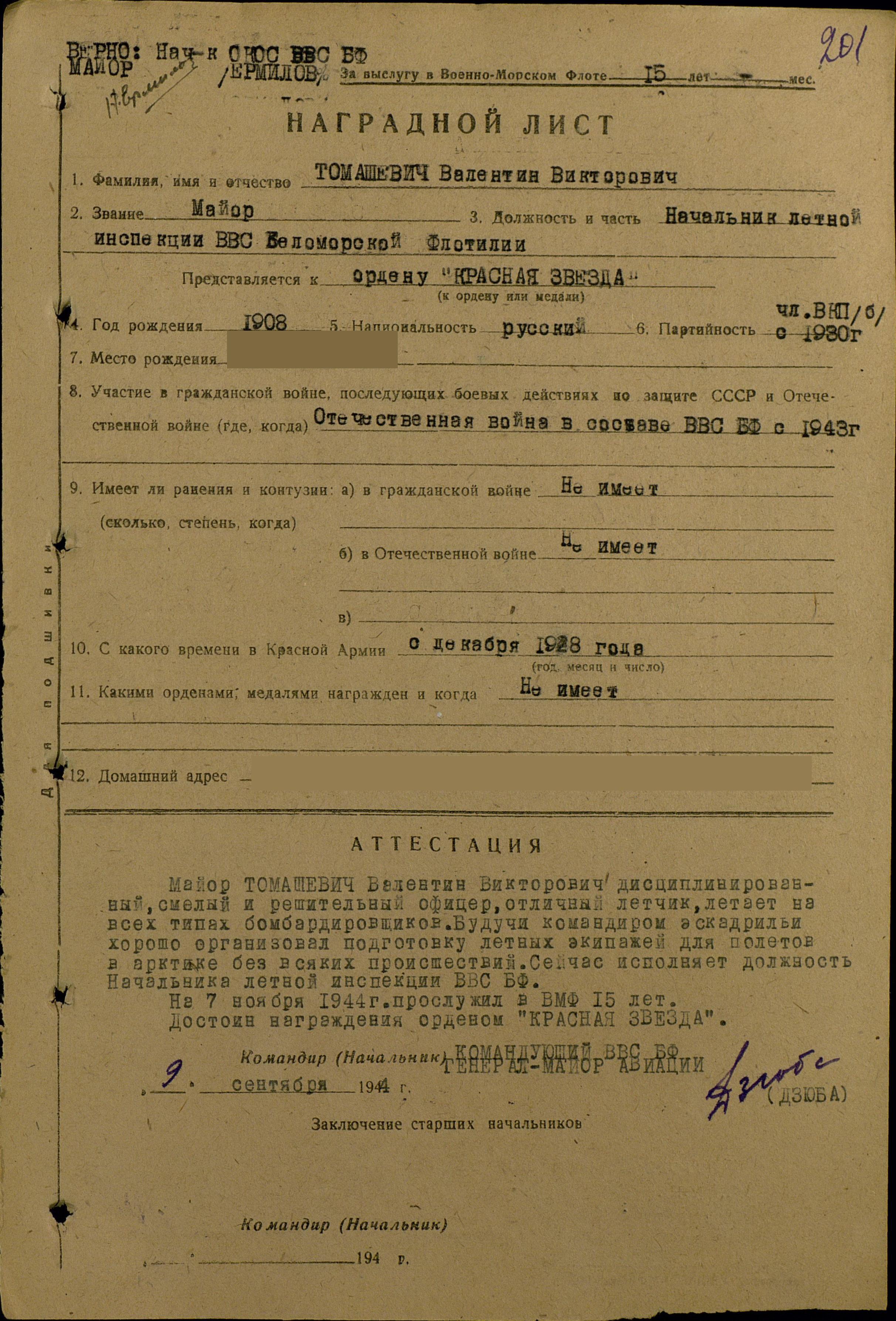 К сожалению, за прошедшие 45 лет ничего не было известно о судьбе и боевой работе экипажа бомбардировщика — дара коллектива рабочих и служащих порта. Восстановить этот пробел взялись члены Архангельского совета ветеранов Краснознаменного Северного Флота. В начавшийся поиск постепенно были вовлечены многие ветераны минувшей войны. В результате кропотливой работы удалось прояснить некоторые обстоятельства. В разговоре с директором Музея авиации Севера Г. В. Дичковым выяснилось, что он знаком с капитаном Константином Кузьмичем Бабием. Подполковник в отставке Константин Кузьмич Бабий сразу откликнулся на нашу просьбу и написал все, что ему было известно. Оказалось. что 22 августа 1944 года на Нарьян-марском аэродроме одновременно находились две авиаэскадрильи: третья — 44-го смешанного авиаполка Беломорской военной флотилии, командиром которой являлся майор В. В. Томашевич, и вторая эскадрилья 54-го авиаполка, где командиром был К. К. Бабий. Самолет по решению командования ВВС флотилии вручался третьей эскадрилье 44-го полка и принимал его майор Томашевич. Сам же Бабий выступил на митинге по просьбе Томашевича. Таким образом, был установлен полк и исправлена ошибка, допущенная в «Няръяна вындер» за 4 октября 1944 года, где командиром бомбардировщика был назван Бабий.