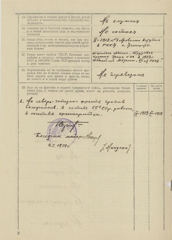 4. Работа, служба и участие в общественной жизни после Февр. революции и до поступления в Красную Армию /флот/.