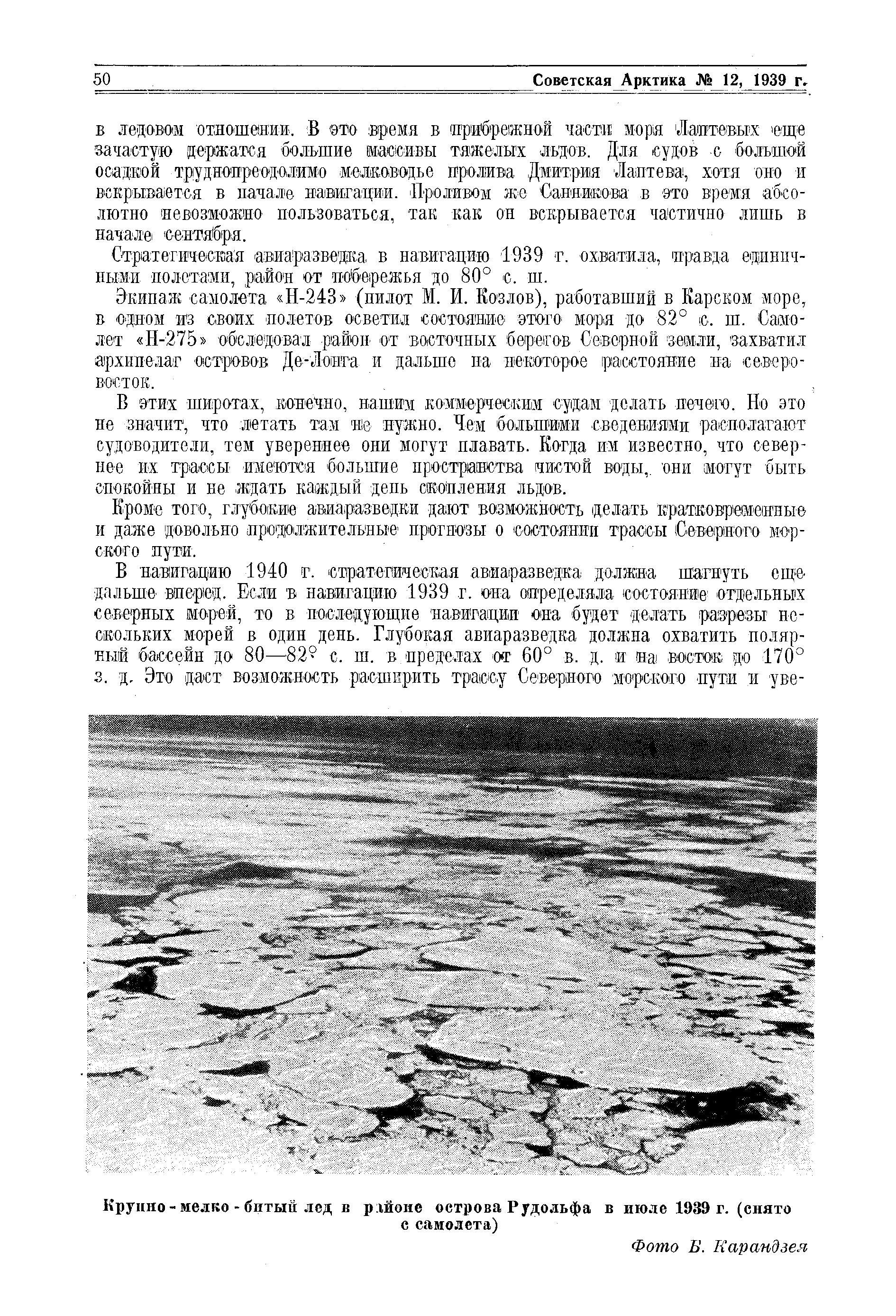Если раньше авиаразведка в основном была тактической, то в навигацию 1939 г. ее задачи расширились. В этом году проводилась глубокая, стратегическая разведка до 80° с. ш.