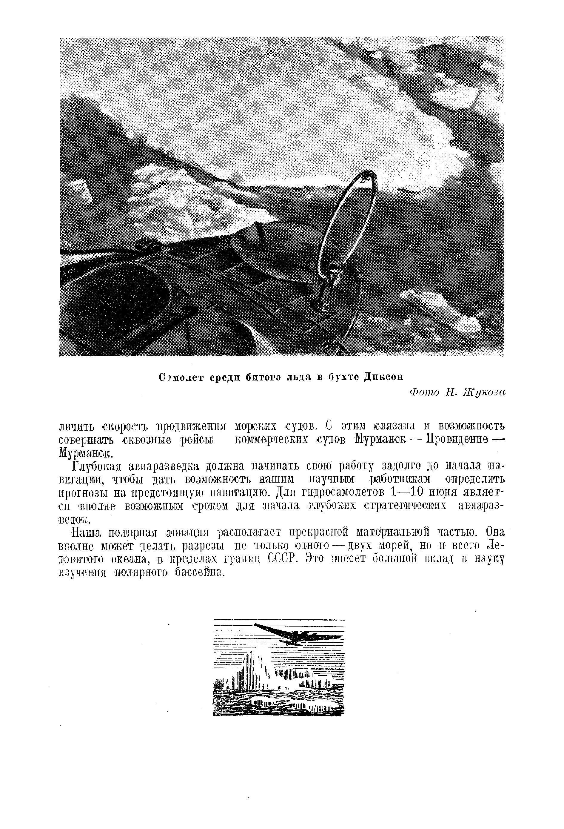 Наша полярная авиация располагает прекрасной материальной частью. Она вполне может делать разрезы не только одного—двух морей, но и всего Ледовитого океана, в пределах границ СССР. Это внесет большой вклад в науку изучения полярного бассейна.