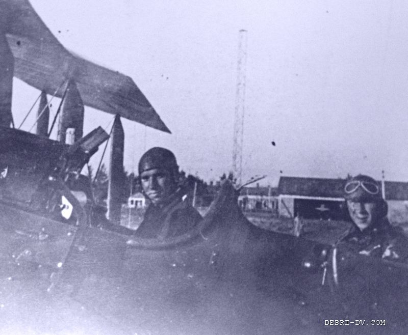 За штурвалом самолёта Fokker D.XI (Фоккер ФД-11) №4747 (слева). 1931 г. Именно на этом самолете он пролетал под мостом на р. Амур у Хабаровска и над ул. Карла Маркса на предельно малой высоте, чем вызывал восхищение горожан.