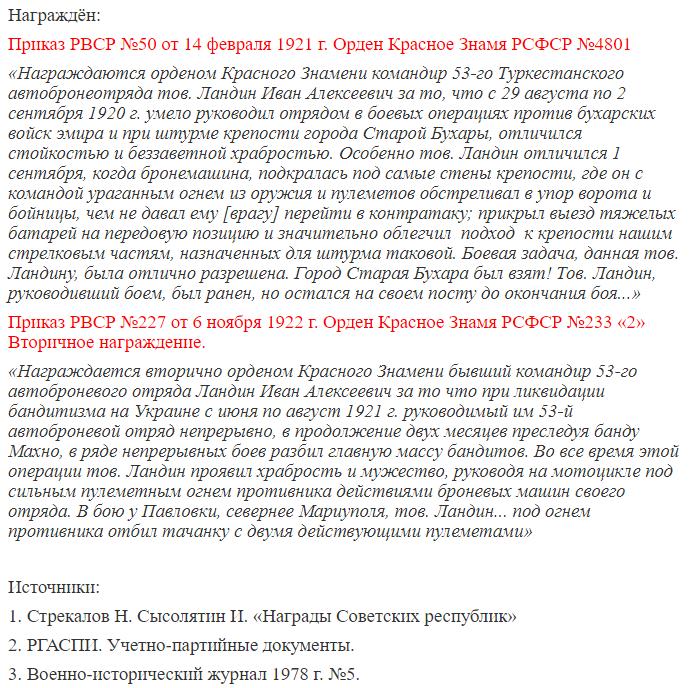 и посмотреть документы связанные с командиром отряда Ландиным И. А.: