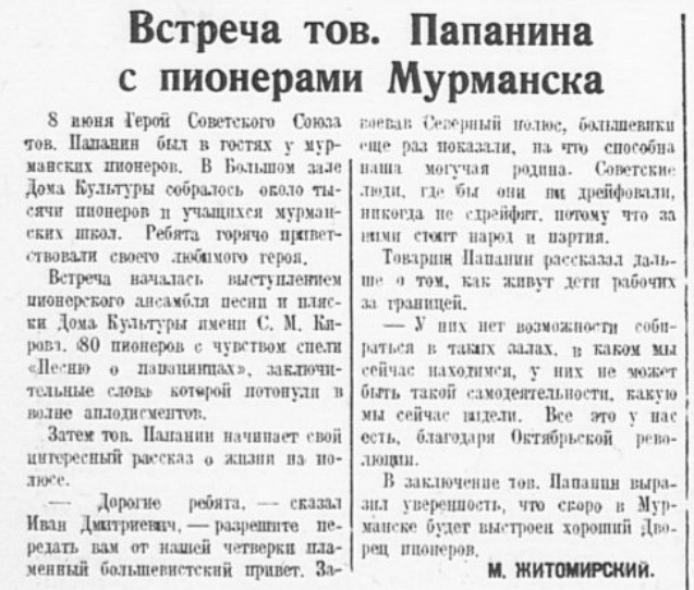 Полярная правда, 8 июня 1938 г. №129(3499):