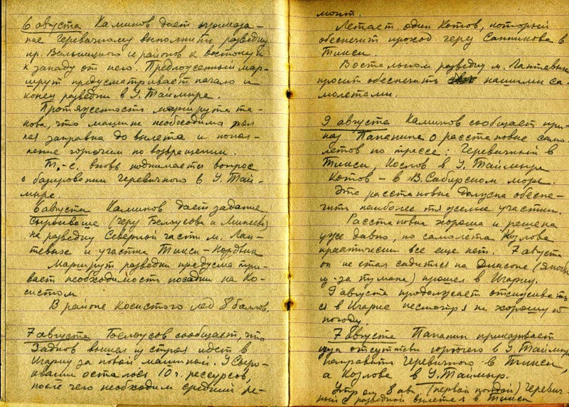 Теперь в лагере дрейфующей станции СП-2 мы жили несколько дней в одной палатке. Говорили о делах, о прошлой совместной работе. Зиму 1943/44 года мы вместе жили и работали в штабе морских операций на Диксоне, где я застрял на зимовку после плавания в навигацию 1943 года на борту судна «Мурманец».