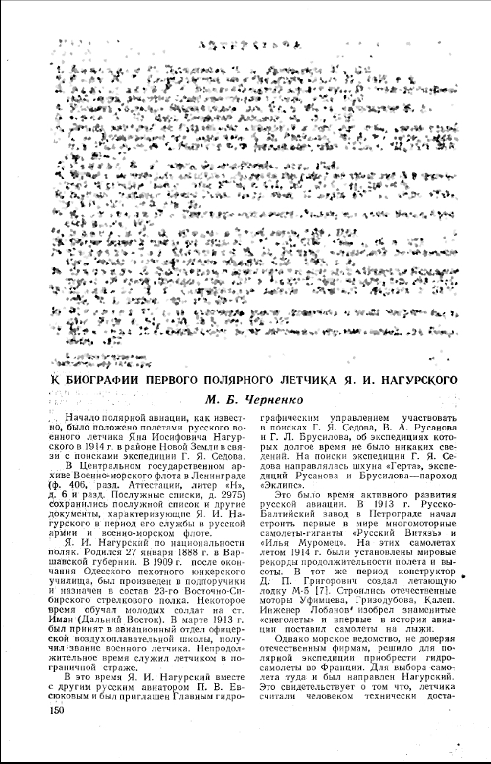 К БИОГРАФИИ ПЕРВОГО ПОЛЯРНОГО ЛЕТЧИКА Я. И. НАГУРСКОГО