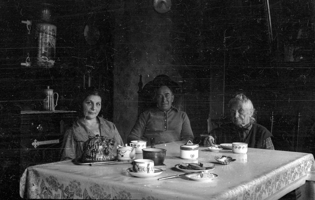Б.И.Россинский за столом с женой Анфисой Сергеевной Натрускиной и матерью Ольгой Ефимовной. Москва, Малый Власьевский пер., 1935 г.