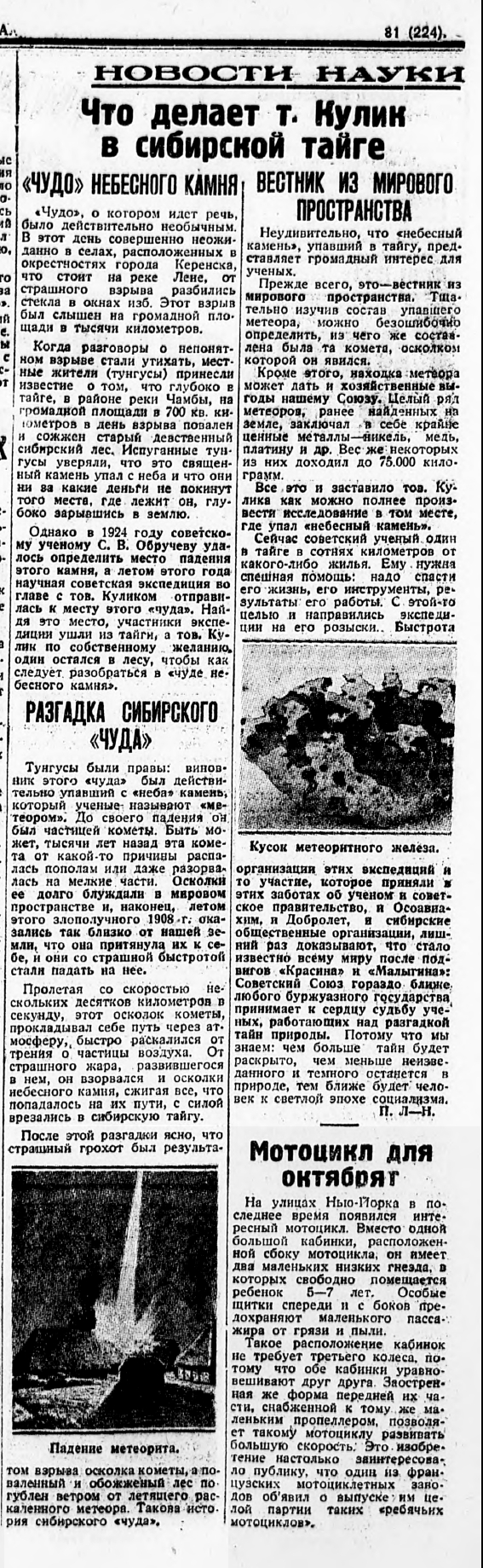 VIII. Творимые легенды.Фактория Ановар — это тот пункт, где Сытин покинул Кулика, и откуда ученый вернулся на место падения метеорита. Это было два с половиной месяца назад.