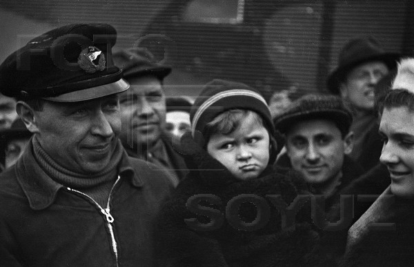 Встреча полярных летчиков И.П.Мазурука и Ф.Б.Фариха, участвовавших в высадке первой дрейфующей научной станции "Северный полюс-1". Илья Мазурук.