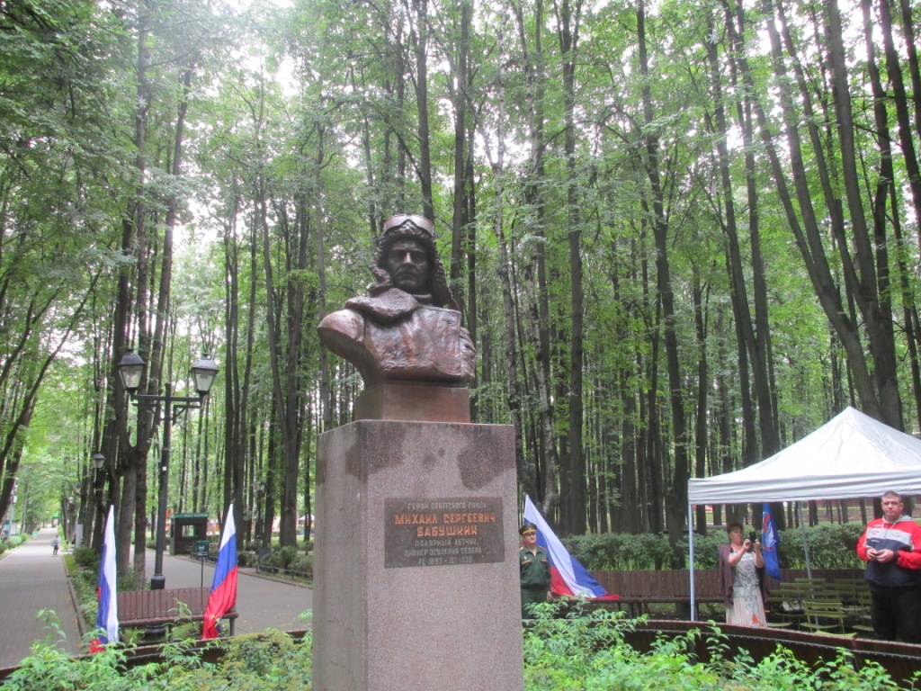 В Бабушкинском парке состоялось торжественное открытие бюста Героя Советского Союза, знаменитого лётчика полярной авиации Михаила Бабушкина. Новый бронзовый бюст героя установили на месте прежнего гипсового. Скульптор Олег Слепов постарался создать более детальный образ летчика. На церемонии открытия присутствовали родственники героя.