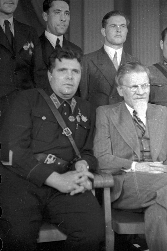 На той же церемонии рядом с женой командующего Резервной группой войск командарма 2 ранга Д.Г.Павлова - Александрой Фёдоровной (девичья фамилия - Кузнецова).