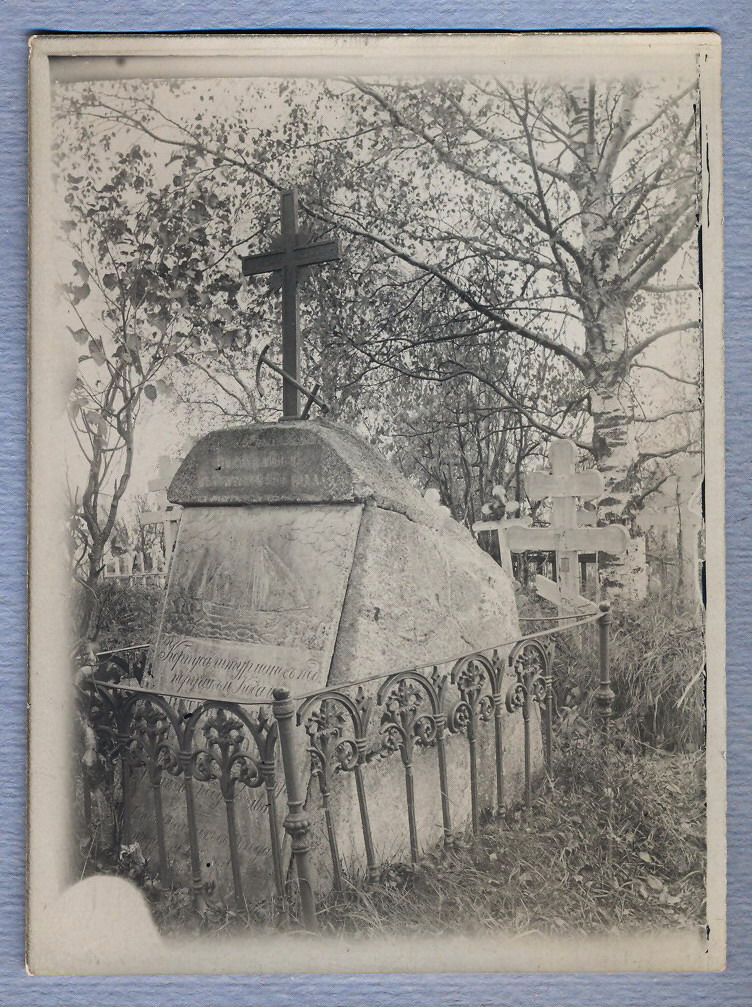 Монумент был установлен еще в 1886 году. Огромный цельный камень с барельефом парусника и высоким металлическим крестом за алтарем храма святого Мартина Исповедника был одним из самых заметных на кладбище. Но в начале 1990-х годов крест с камня исчез. А монумент стал постепенно зарастать бурьяном и покрылся мхом.