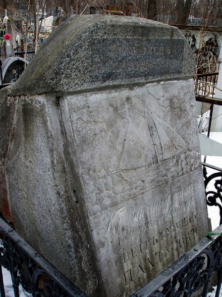 Корпуса штурманов подпоручик и кавалер Петр Кузьмич Пахтусов. Умер в 1835 году, ноября 6 дня. От роду 36 лет. От понесенных в походах трудов и д… о…» (вероятно, домашних огорчений – такова версия в одной из исторических миниатюр В.Пикуля»).
