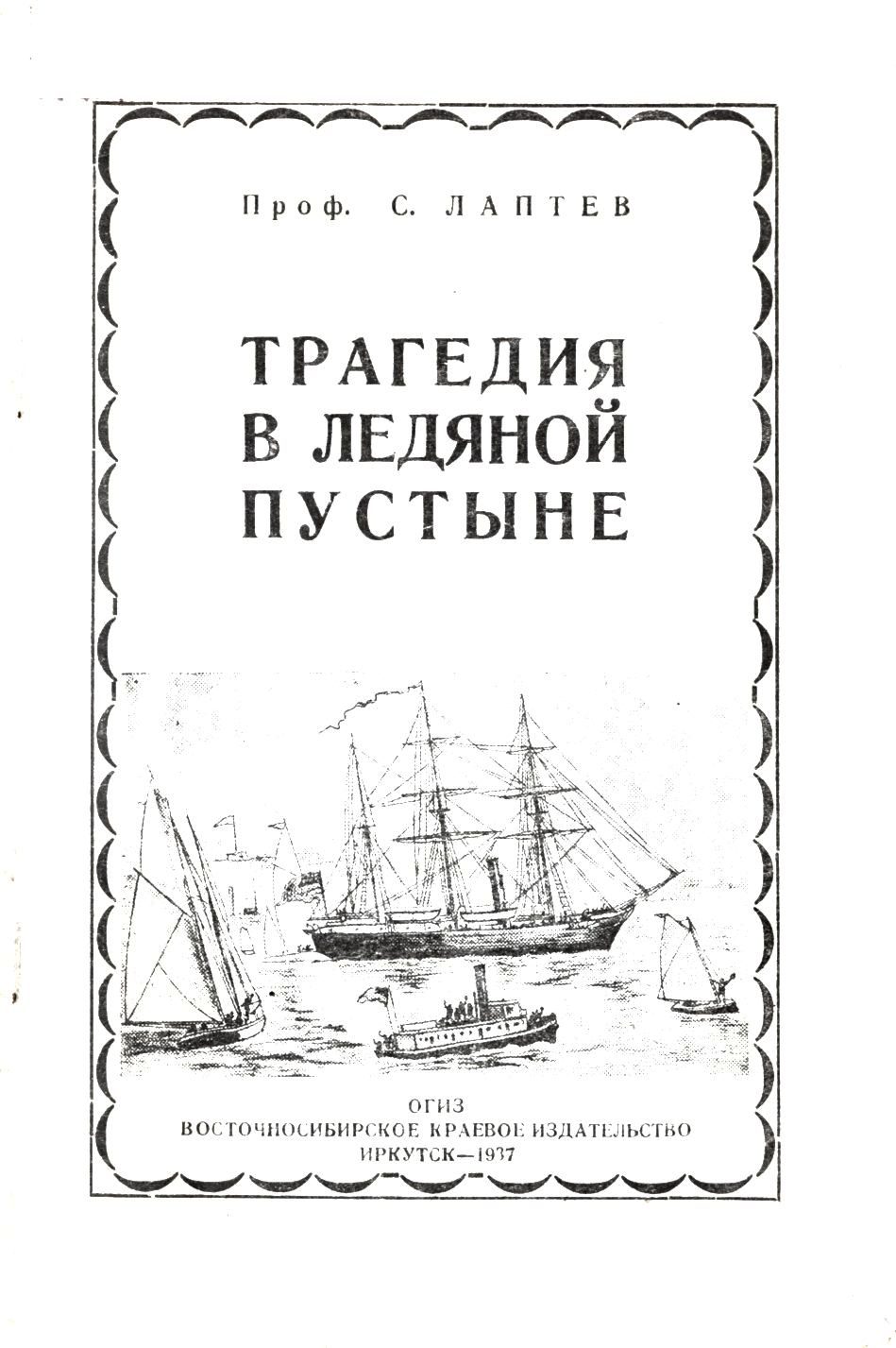 Лаптев С.Н. Трагедия в ледяной пустыне : (Амер. полярная экспедиция лейтенанта Де-Лонга на судне "Jiannete" [1879-1881 г.]) / проф. С. Лаптев. - Иркутск : Вост.-Сиб. краев. изд., 1937 (тип. треста "Полиграфкнига"). - Обл., 58, [2] с. : ил.